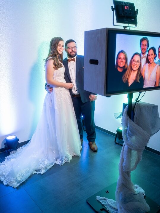 Unsere exklusive Fotobox bietet etwas, das es so in Deutschland nur bei uns gibt: eine Live-Diashow auf einem großen Bildschirm! Während deine Gäste Fotos machen, werden die besten Momente der Verantaltungs auf dem Display angezeigt – das sorgt für Begeisterung, Spaß und unvergessliche Erinnerungen in Echtzeit.